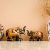 This Unique Design dark brown wooden Elephant showpiece is handmade and hand designed by the artisans of rajasthan. it is giving an adorable look Elephant are the peaceful animals and they brings good luck in your life. Elephants Symbolize Lord ganesha and ganesha is known as the remover of obstacles and negative energies. This elephant showpiece is made for enhancing the beauty of your home. Elephants brings good luck and they welcomes good wealth and prosperity in your life.