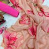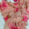 Women’s Vibrant Rani Pink Floral Japanese Chiffon Saree with Hand-Painted/Printed Motifs – Perfect for Summer & Casual Festive Wear